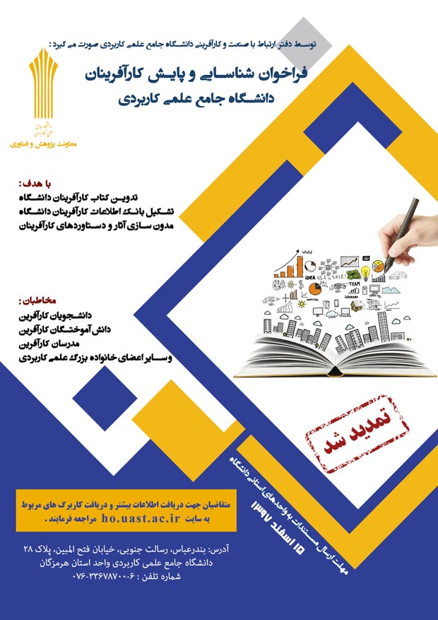 تمدید فراخوان پایش و شناسایی کارآفرینان دانشگاه جامع علمی کاربردی