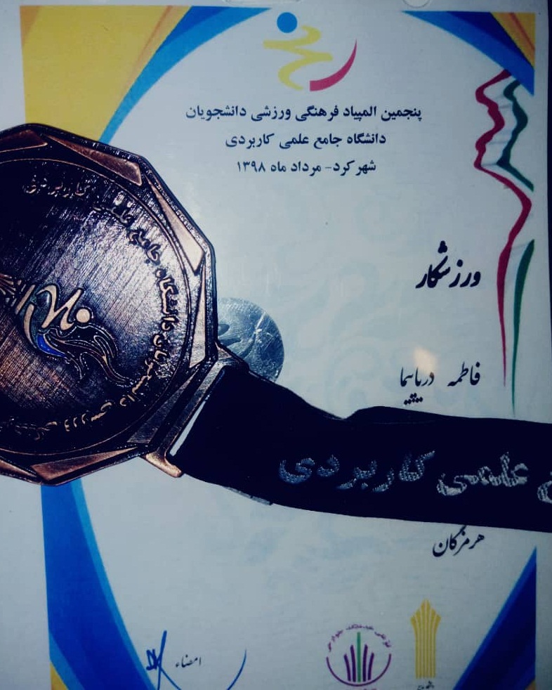 کسب مقام سوم مسابقه محلی طناب کشی توسط سرکار خانم فاطمه دریاپیما از تیم ورزشی استان هرمزگان در پنجمین المپیاد فرهنگی و ورزشی دانشگاه جامع علمی کاربردی
