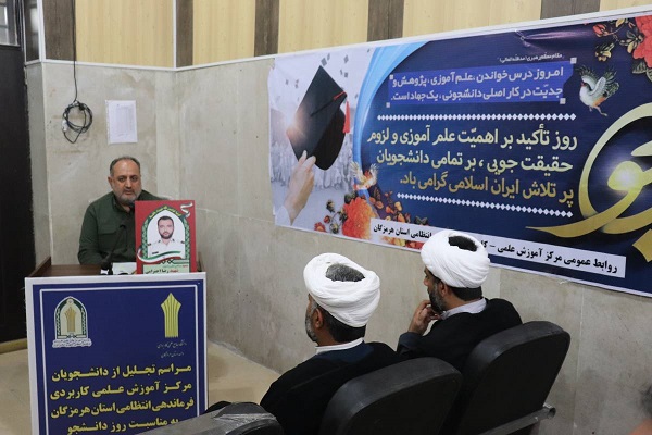 به گزارش روابط عمومی دانشگاه جامع علمی کاربردی استان هرمزگان، به مناسبت بزرگداشت روز دانشجو، دکتر محمود صباحی زاده، رئیس دانشگاه جامع علمی کاربردی استان هرمزگان، سرهنگ دولتیاری معاون هماهنگ کننده فرماندهی انتظامی استان هرمزگان و همچنین با دعوت از خانواده دانشجوی شهید مرکز؛ ستوانسوم شهید رضا احترامی کلوچانی، با حضور در مرکز آموزش علمی کاربردی فرماندهی انتضامی استان، طی مراسمی این روز را گرامی داشته و از خانواده شهید و تعدادی دانشجوی منتخب به نمایندگی از سایر دانشجویان تجلیل بعمل آمد.