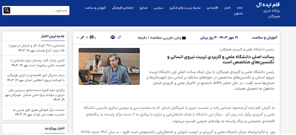 انعکاس نشست خبری دکتر محمودصباحی زاده رئیس دانشگاه جامع علمی کاربردی استان هرمزگان به مناسبت سی و سومین سالروز تاسیس دانشگاه